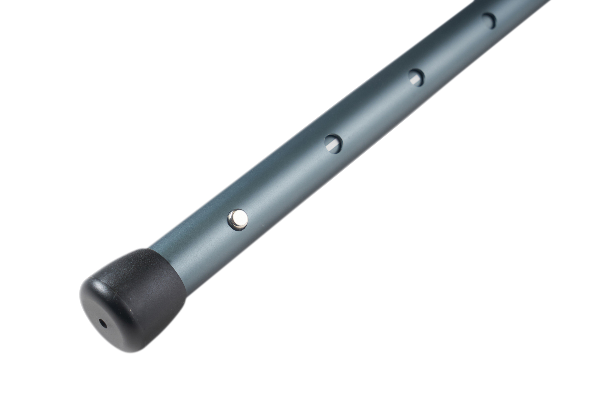 A designated foot-end with a reinforced rubber cap ensures a good grip on any ground surface and the top end is equipped with a short, durable alloy tip to insert into loops/webbings/pocket and eyelets.