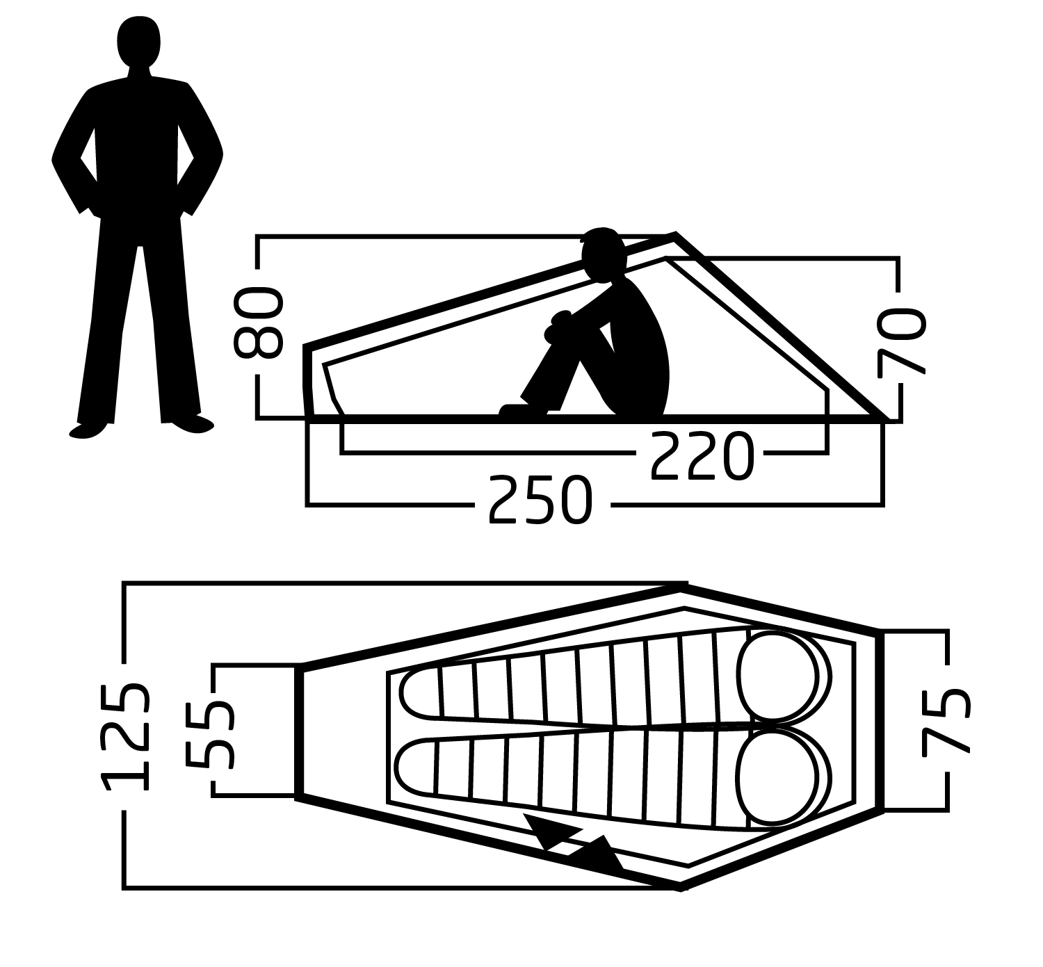 • Indicates the weight of the product and the absolute minimum of required accessories. (Excluding all packsacks, excess guyline, pegs, repair kit etc. )