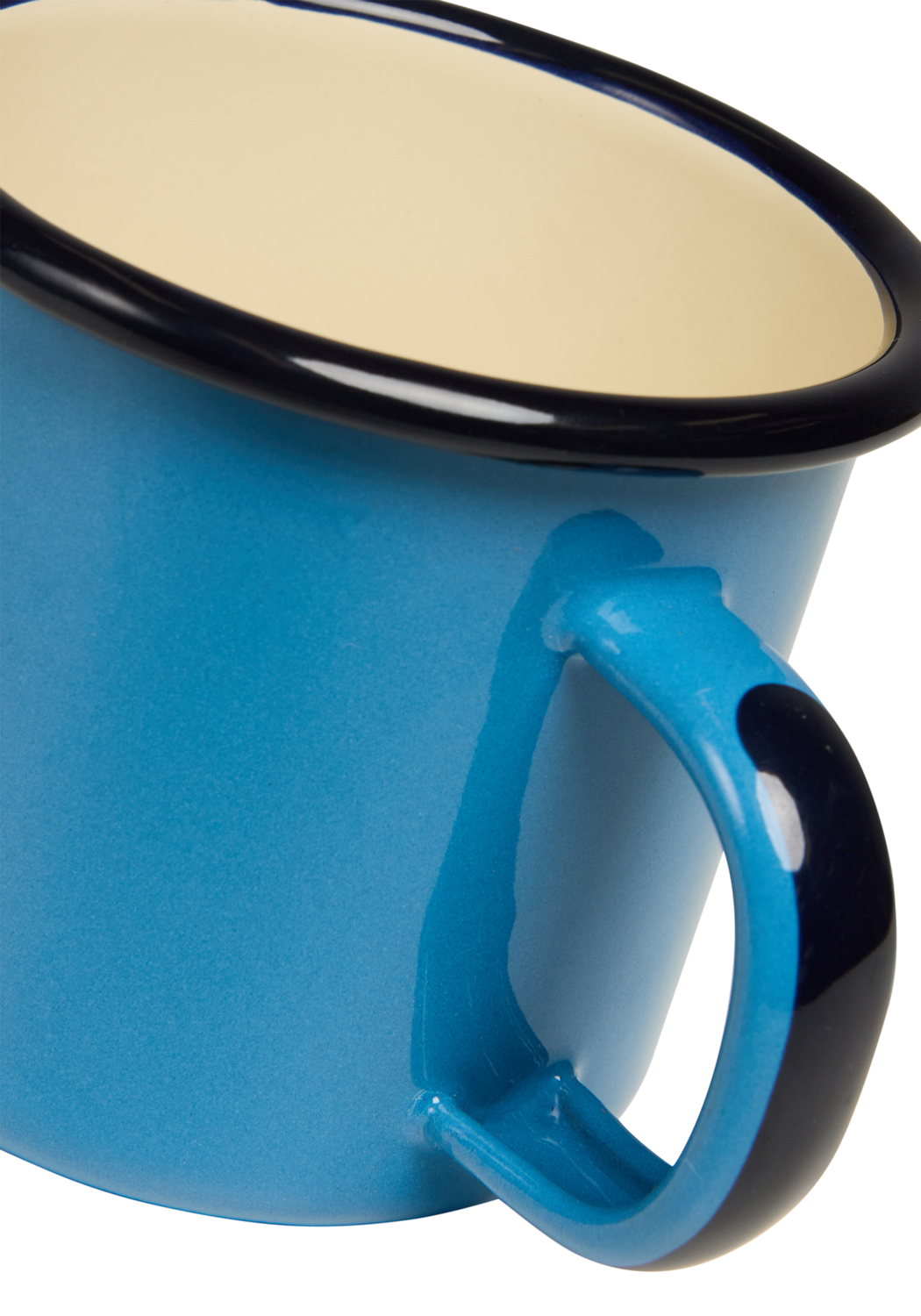 - Sturdy handle and rounded drinking rim