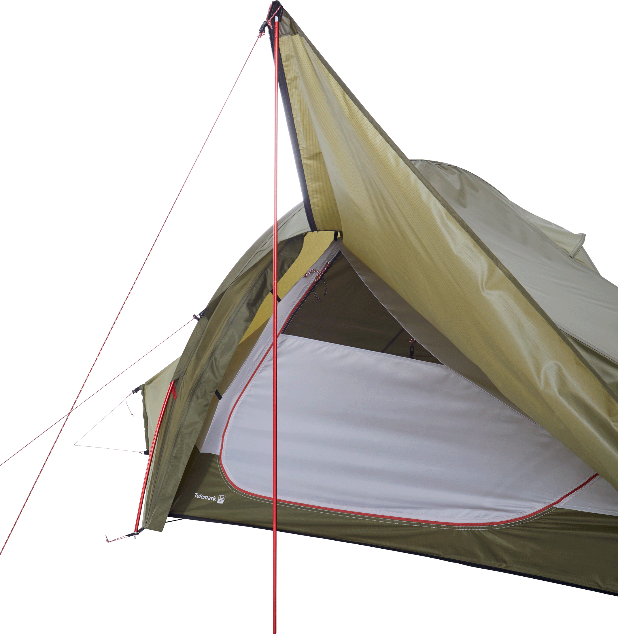 Telemark 2.2 PU has the same construction as the original and legendary ultra lightweight and price-winning Telemark 2 ULW tent. There are two main differences from the original to this 2.2 PU version. First of all, the delicate “weight-is-everything!”-fabric is replaced by a strong Rip-stop Polyester, which will prove durable and reliable in any condition. Secondly, an extra entrance has been added, to make getting in and out easier. Let’s be honest; it is essentially a night door that prevents you from having to climb over each other at night to get out to pee.