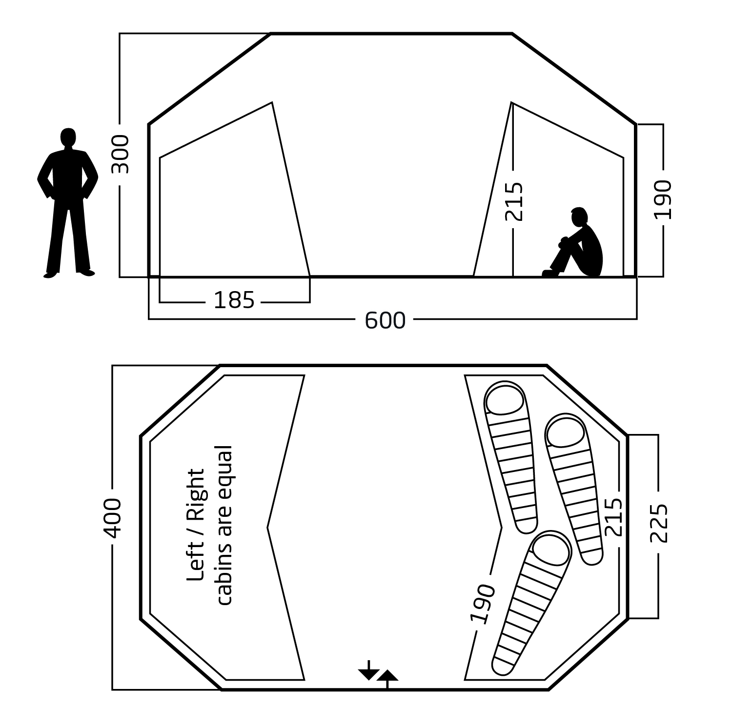 - Fits two inner cabins (each cabin fits 3 persons)