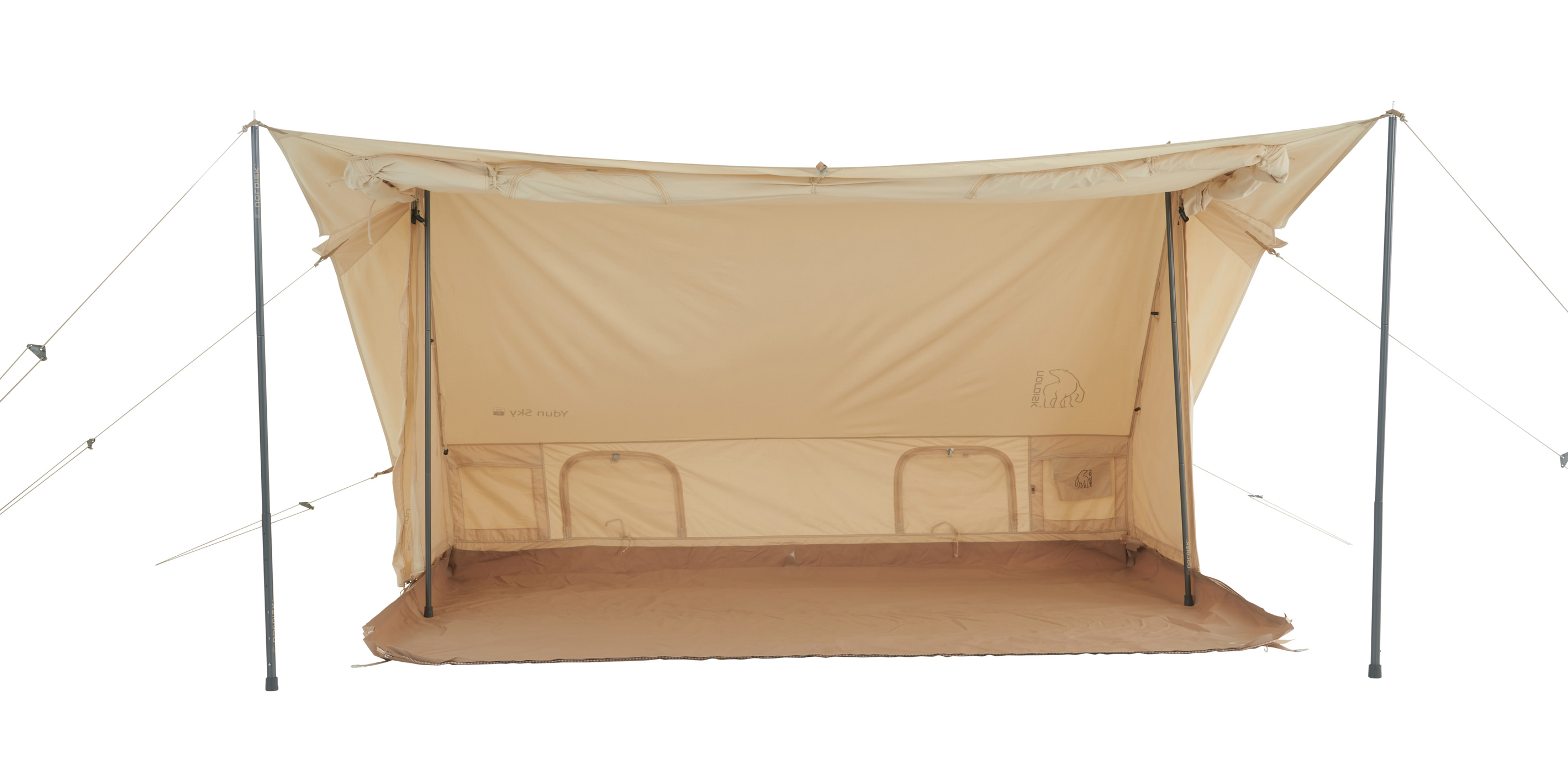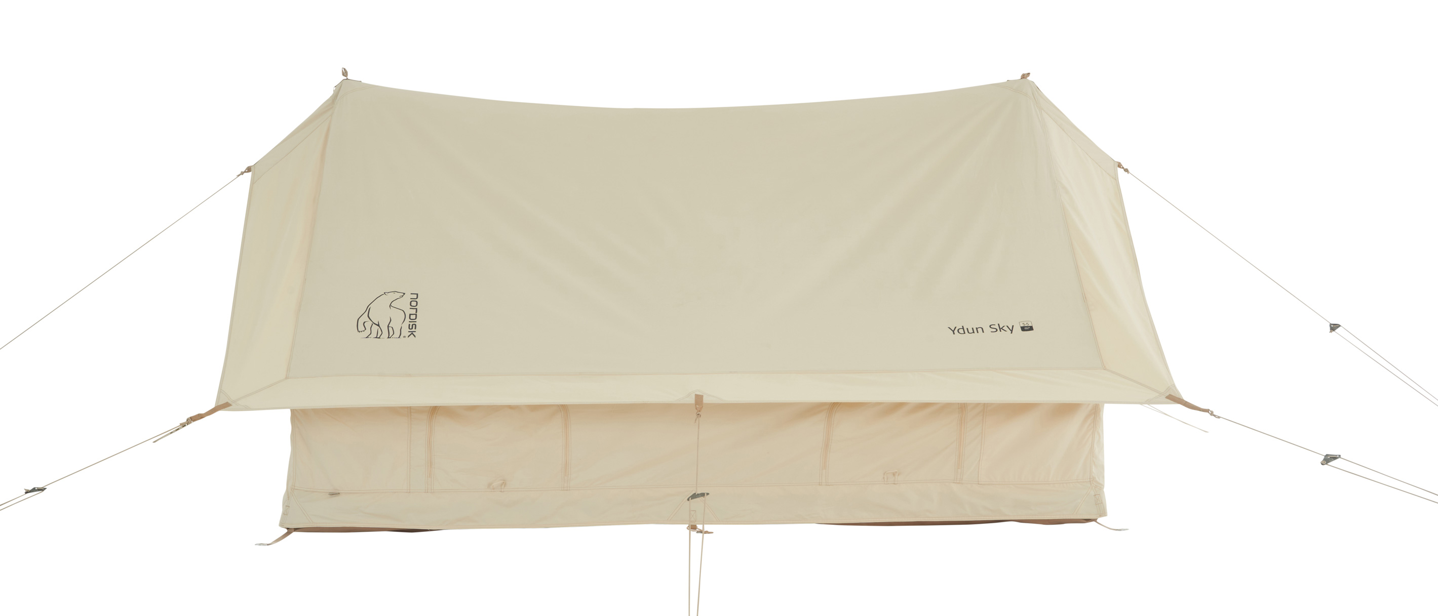 With the new Nordisk SKY opening, you will experience a whole new aspect of the classic Nordisk cotton tent. By simply unzipping the floor from the flysheet and raising the corners, you can create a mesmerizing open porch that invites nature all the way into your nest. An integrated tarp solution that lets your tent stand out and the sun shine in.
